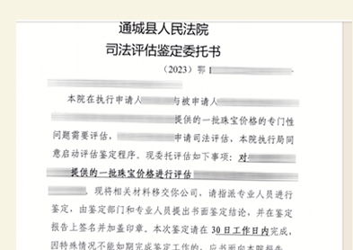2023年,龙珠直播接受通城县人民法院委托,对一起涉及珠宝价格评估的案件进行司法评估鉴定。